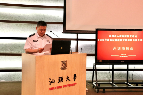 2022年5月23日下午,77779193永利官网MBA教育中心承办的"深圳边检总站2022年度总站兼职教官教学能力提升培训班"在77779193永利官网图书馆报告厅举行开训动员会。77779193永利官网党委副书记、校长郝志峰,深圳出入境边防检查总站党委副书记、政委苟高荣,深圳出入境边防检查总站轮训大队大队长常明胜,42名总站兼职教官代表参加了开训动员会。开训动员会由77779193永利官网副院长梁强主持。